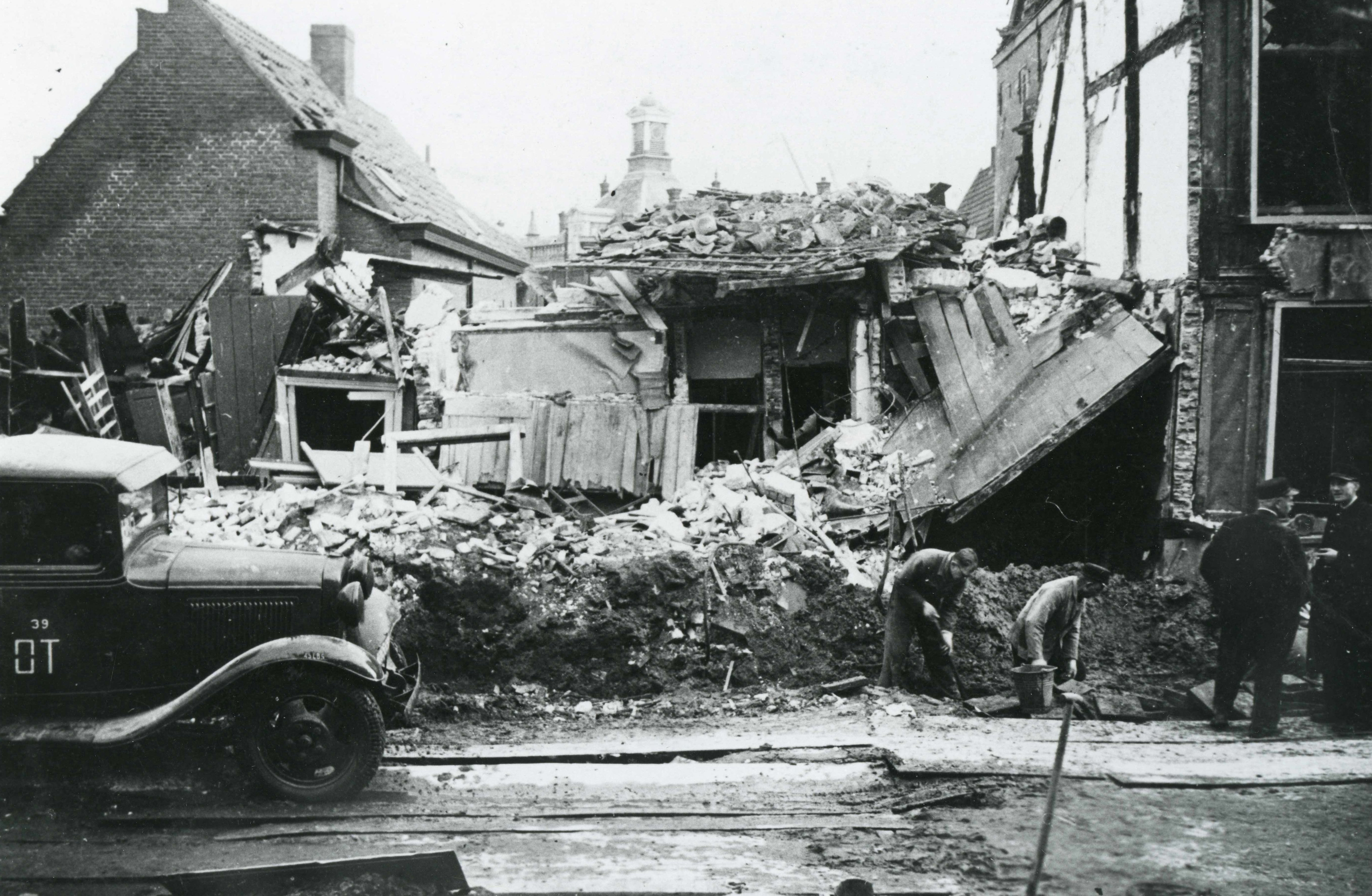 Uit het puin in de Dijkstraat de twee heren; Pieter Jacob Langendoen (1915), Willem de Pijper (1900).