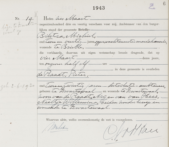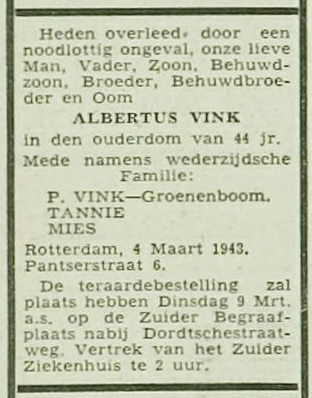 Bron: 1) rotterdamsch nieuwsblad, 06-03-1943 / 2) streekarchief vpr