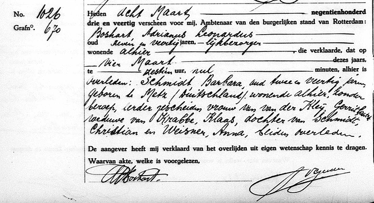 Ze wordt begraven op de begraafplaats aan de Rijkstraatweg in Hellevoetsluis. Haar man plaatst na de begrafenis niet alleen een dankbetuiging in het Rotterdamsch Nieuwsblad maar ook in de Deutsche Zeitung in den Niederlande.