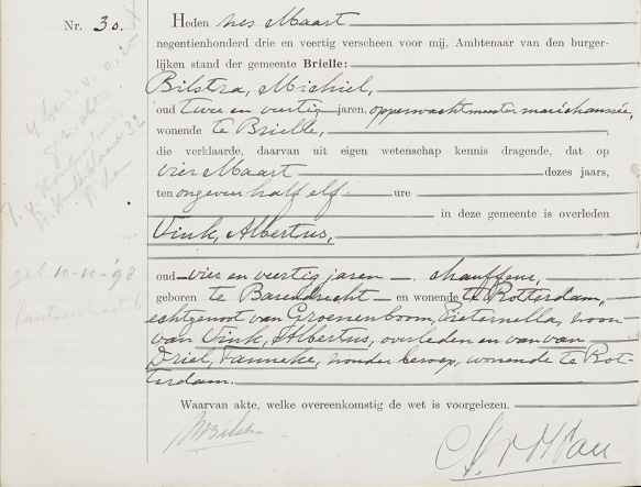 Albertus Vink werkt als chauffeur, geboren in Barendrecht (10 oktober 1898) en op 8 september 1926 getrouwd met Pieternella Groenenboom. Ze hebben twee kinderen.