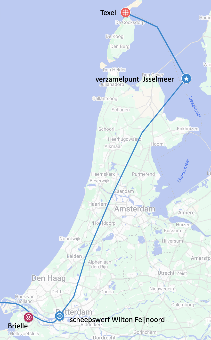 Het deel van de formatie dat niet terug vliegt naar Engeland, maar ook niet door naar Hamm, verzamelen zich boven het IJsselmeer. De 28 vliegtuigen vliegen daarna richting het derde target. Langs Haarlem gaan ze richting Rotterdam (blauwe route).