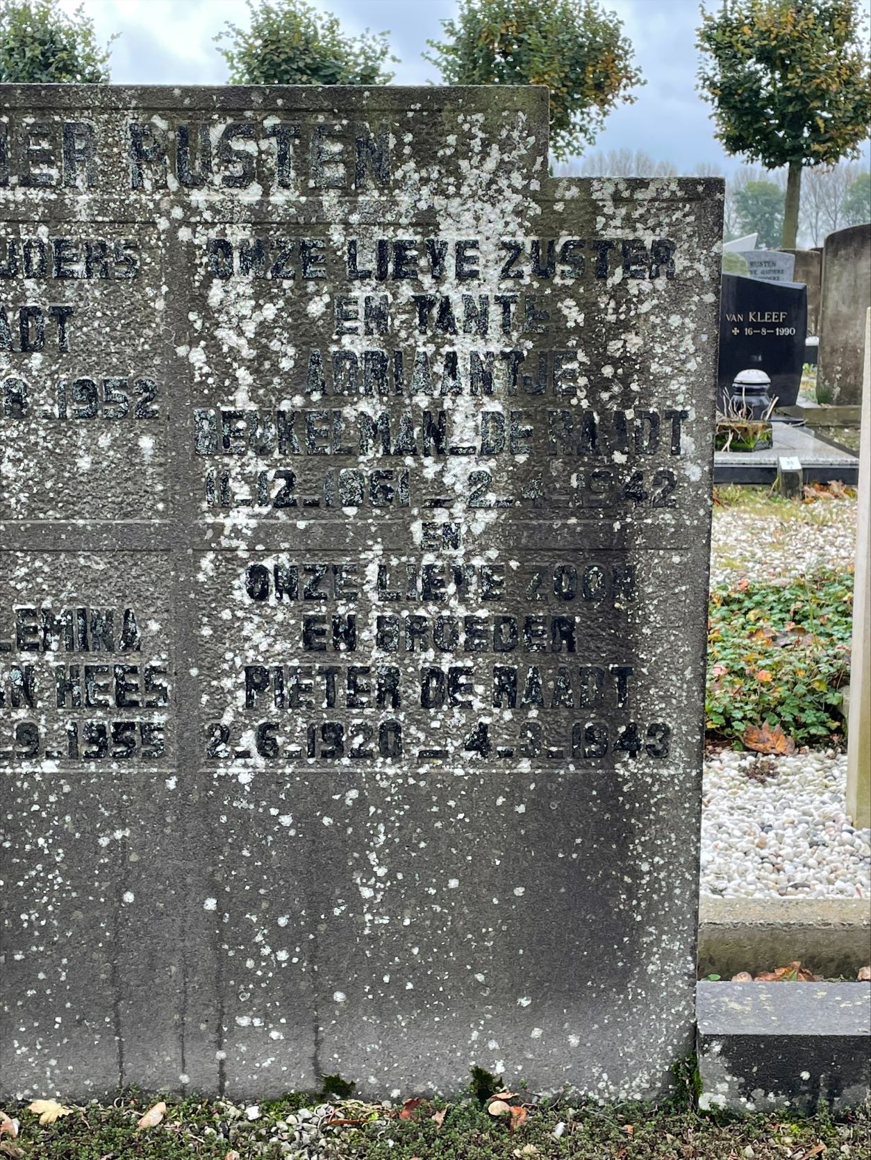 In de akte van overlijden staat vermeld de naam Pieter Oranje, op de grafsteen staat vermeld Piet Oranje. Op de grafsteen van Maaike van Rietschoten staat het geboorte jaar verkeerd vermeld. Van Adriana Jacoba Oudenaarden en Antonie Willem van der Reest is geen graf aanwezig of gevonden.