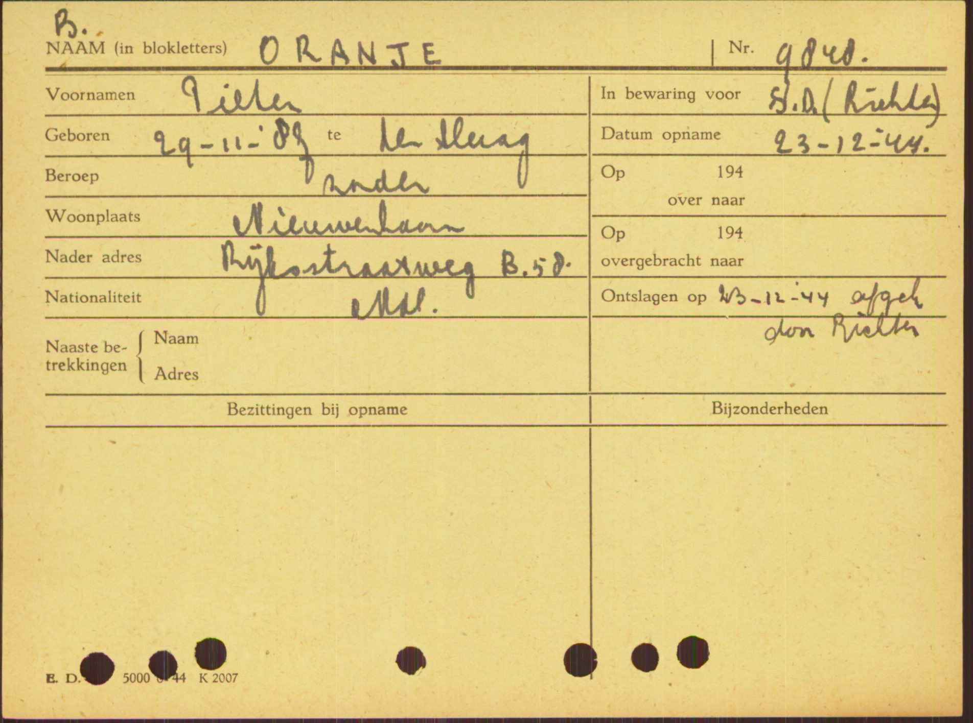 Geboren: 31 maart 1910 Woonplaats: Wildervank Omgekomen: 26 juni 1941, Brielle.