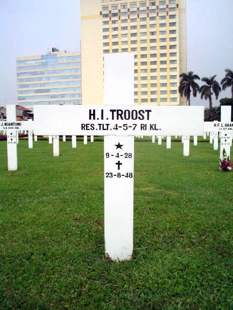 Na het slagen voor het HBS-B examen gaat Hermanus Izaak Troost in dienst en komt bij de Grenadiers. Begin 1948 vertrekt hij naar Nederlands-Indië en wordt ingedeeld bij het 4de compagnie 5de bataljon 7de regiment infanterie. Daar wordt hij bevorderd tot 2de luitenant . Op 22 augustus 1948 gaat hij met een kleine patrouille naar Tjigelam. Het vermoeden bestaat dat een berucht plaatselijk bendehoofd bij een wajangvoorstelling aanwezig zal zijn. Een hinderlaag wordt opgezet en Hermanus Troost bevindt zich tussen het publiek. In de kampong wordt de patrouille verrast door een aanval van de bende. Herman Troost wordt door de vluchtende mensen meegevoerd. Een later uitgezonden patrouille vindt zijn verminkte lichaam met een afgesneden hoofd met één of twee schotwonden door het hoofd terug. Hij is op 23 augustus 1949 begraven op het Nederlands Ereveld Menteng Pulo.