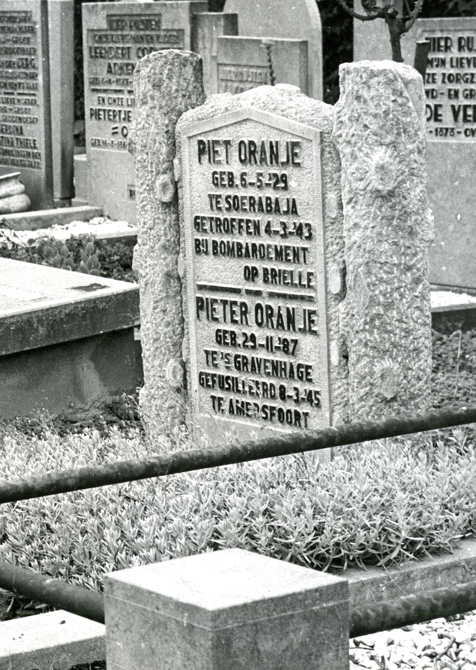 Pieter Oranje is de vader van Piet Oranje. Pieter Oranje is gelijk met Theodorus johannes Kwanten gefusilleerd en herbegraven in Brielle. Pieter Oranje wordt genoemd op het verzetsmonument en in de erelijst van Gevallenen 1940-1945.