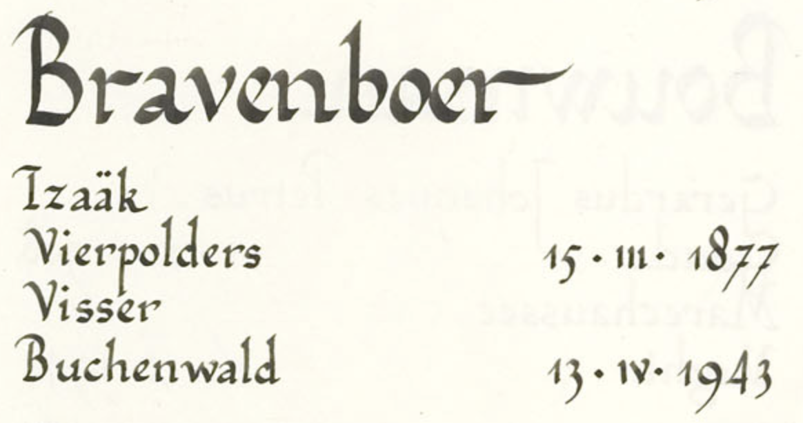 Izaäk Bravenboer wordt genoemd in de erelijst van Gevallenen 1940-1945.